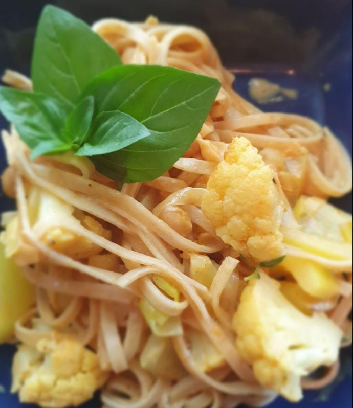 Häll sedan nudlarna i woken och blanda ihop alltsammans.